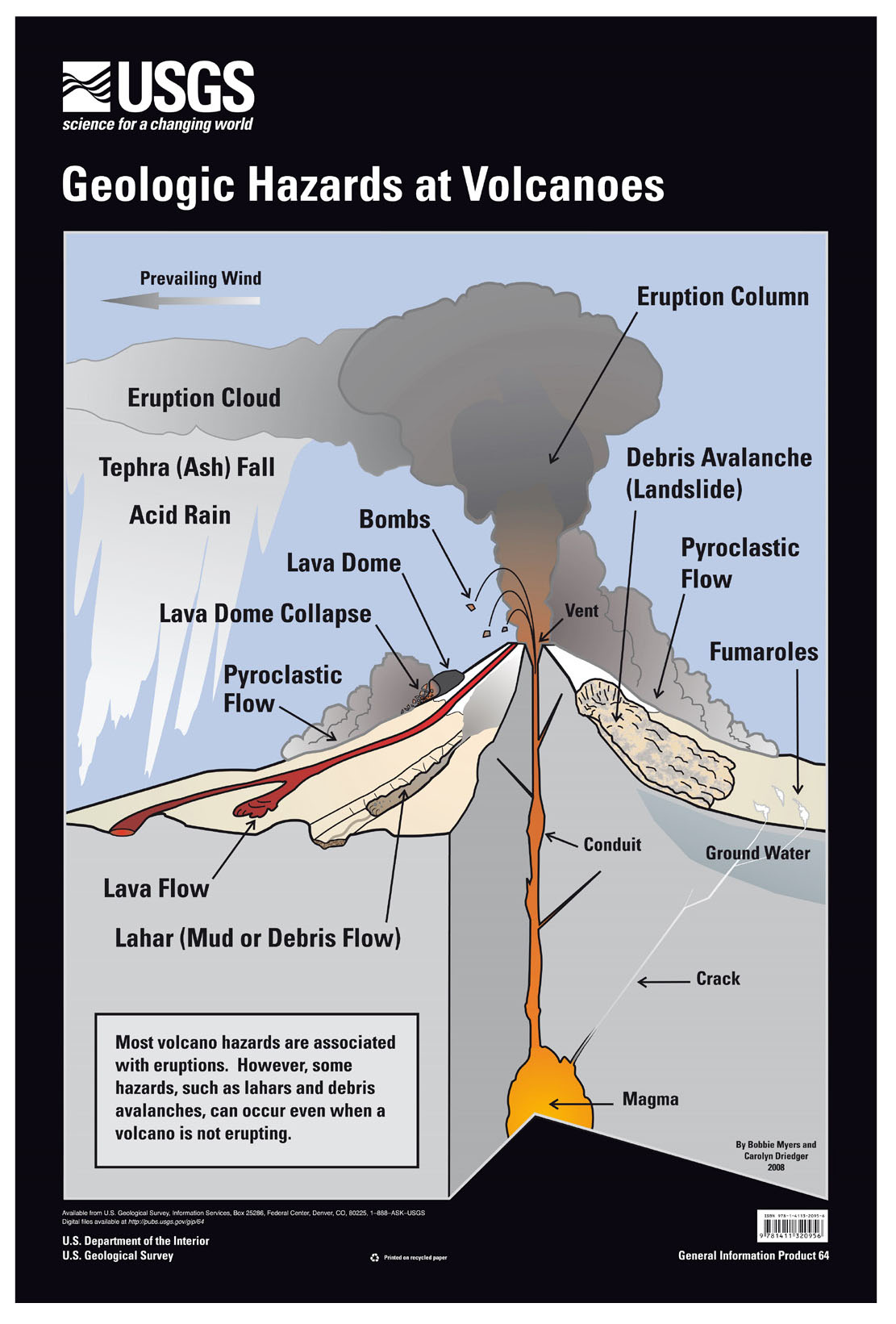 - Geologic hazards at volcanoes (Myers & Driedger, 2008).