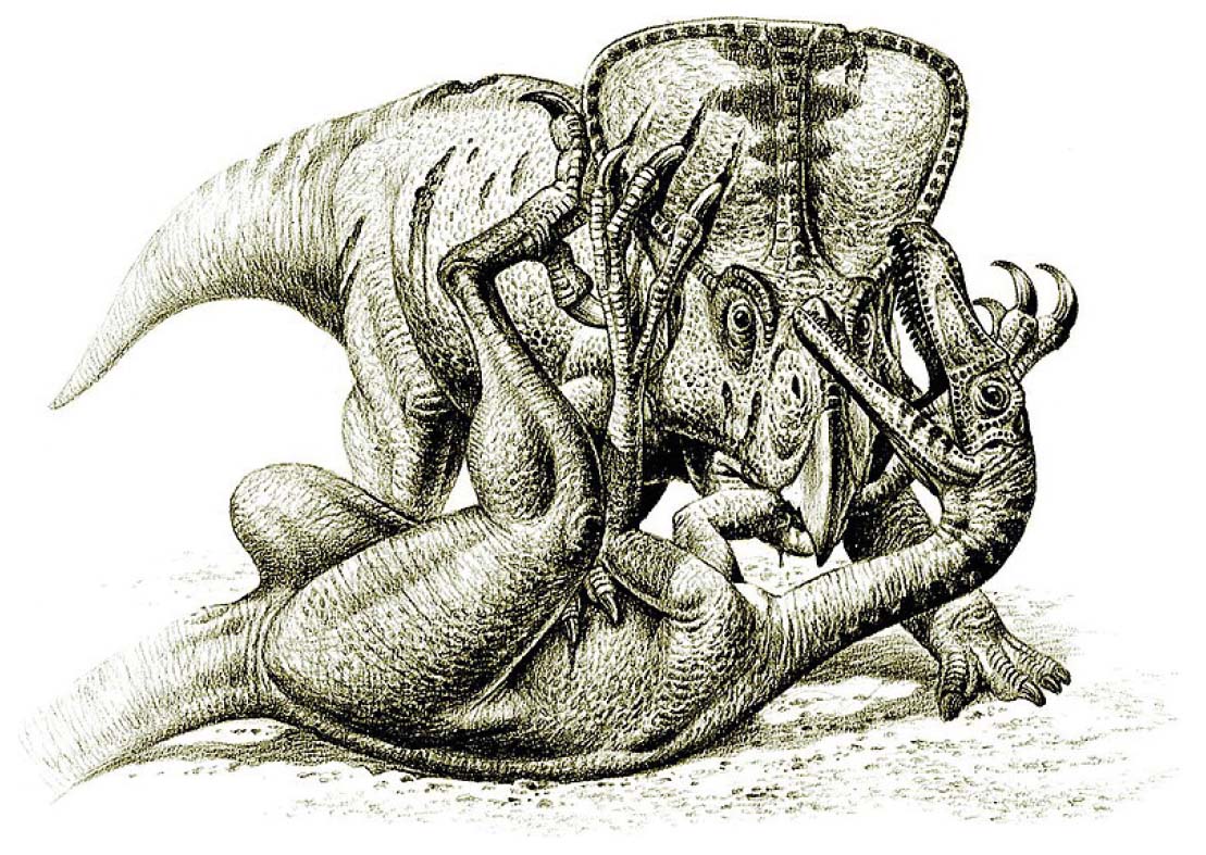 - The “fighting dinosaurus”, artwork by Raul Martin, from Chiappe (2003).